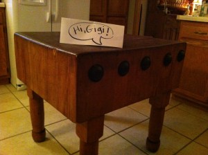 He is the butcher block from Gigi and George’s kitchen, and we happily adopted him into the lake-house kitchen when Gigi moved into her Wendy home. He carries a lot of warm memories of family suppers on Third Street. And brunches and lunches, for that matter. He has shouldered a lot of responsibility for serving our lovely patchwork family over the years.